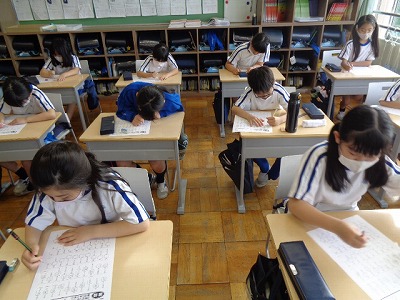 国語では、はじめに3年生の漢字テストを行いました。引き続き、練習をがんばります!