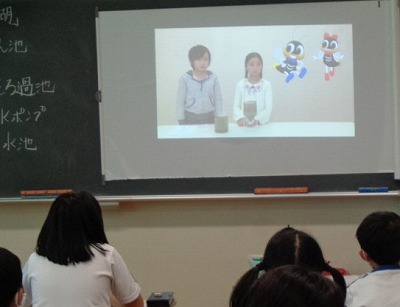 2時間目の社会の学習は、浄水場が「どのようにして水をきれいにしているのか」を映像を見ながら確認し、まとめていきました。薬品を加えて「フロック」を形成し、それをろ過してキレイにしているという事実には、「そうやって、きれいにしていたのか!」と納得している様子でした。
