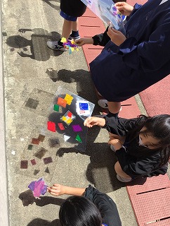 今日はせっかくのお天気だったので、蛍光灯の光だけではなく、太陽の光ではどうなるのか、外に出て確かめました。