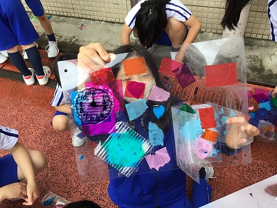 今回の作品は、透明シートが画用紙の代わりなので、作品の中に入ることもできます。