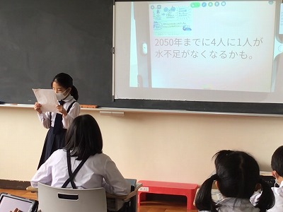 それぞれが調べた事をしっかりまとめ、1分間で伝えます。みんなが聞き取りやすいように、声の大きさや話すスピードにも注意しました。ロイロノートでまとめた資料を、提示しながら発表する姿もありました。