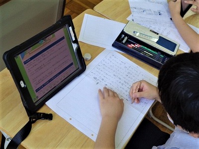 6時間目の総合学習は、グループ発表の練習を開始します。ロイロノートを使って、班での資料をまとめ、みんなで共有したり、iPadを有効活用しながら調べ活動を進めます。いよいよ舞台発表も近づいてきました。4年生の伝えたい事が時間の中でどのようにすれば伝わるのか、何度も原稿を書き直していきます。