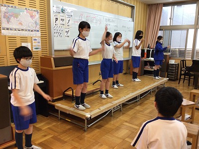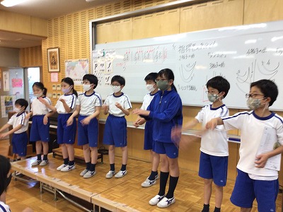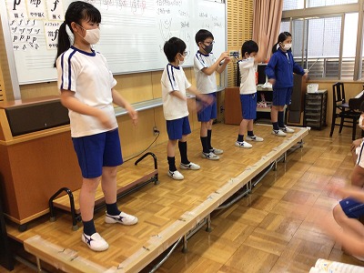 2拍子、3拍子、4拍子の音楽に合わせて、“指揮”を振る学習を行いました。