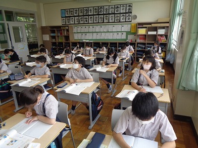 今日は、校長先生から「何気ない日常に自分のまこと(本気)を尽くすこと」というお釈迦様の教えについてお話がありました。どれだけの人が、目標に向かって本気を出すことができているのかを教室で聞いたところ、学校生活を送る上で「本気」を出せている人は数人しかいないということが分かりました。一日一日をそれぞれが“本気”で過ごせるように、クラスみんなで心がけていくことを話し合いました。