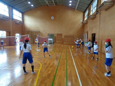 体育の学習は、ソフトバレーボールに挑戦しています。