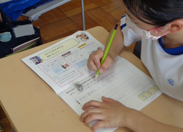 手紙を書く時はどんな時かを考え、正しいお手紙の書き方について知りました。宛名を最後に付けることに、みんな驚いていました。季節の言葉や結びの言葉は、どんなものがあるのかをみんなで考えていきます。