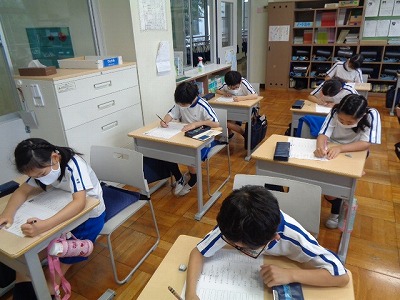 今日は、雨でマラソンが実施できなかったため、月曜日にも実施した4年生の漢字テストの再テストを行いました。前回まちがえた所や、まちがえやすい漢字は、それぞれが家庭学習でもよくチェックをしてくれていたようです。
