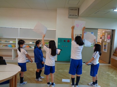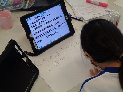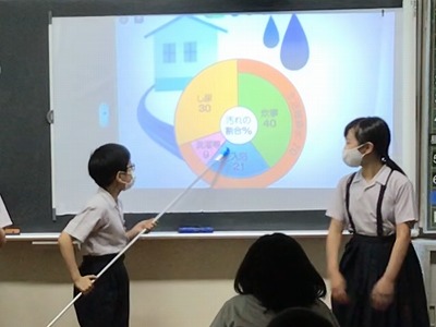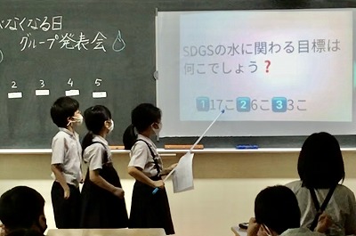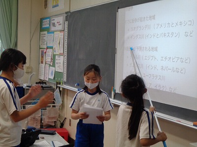 今日は、学びと力の発表会にむけた「水がなくなる日」のグループ発表会が行われました。それぞれのチームが、休み時間もいろんな場所でグループ活動を進めてくれています。