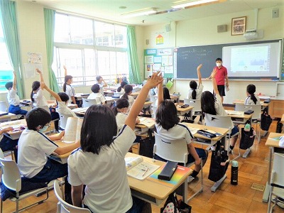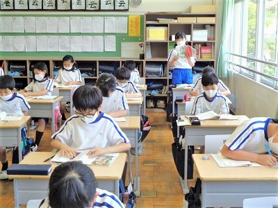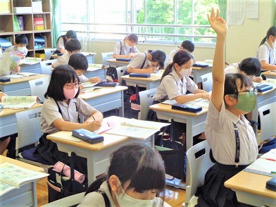 国語の学習は、「一つの花」というお話に取り組んでいます。このお話は、戦争中、満足に食事がとれなかった少女ゆみこを中心としています。今日は、ゆみこのお父さんやお母さんの“ゆみこへの思い”について、文章の中の会話から読み取る活動を行いました。