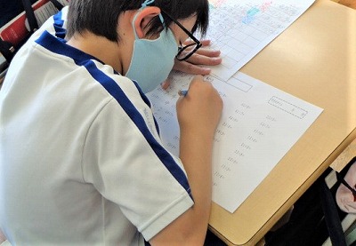 昼根っこタイムは、計算に挑戦しています。タイムを上げるために行っている計算ですが、はじめはぐんぐんと伸びてきたタイムですが、ここからさらにタイムを上げるのは、なかなか難しいようです。伸び悩むタイムにも屈せず、今日も昨日の自分を超えよう!と気合いを入れてスタートする4年生でした。