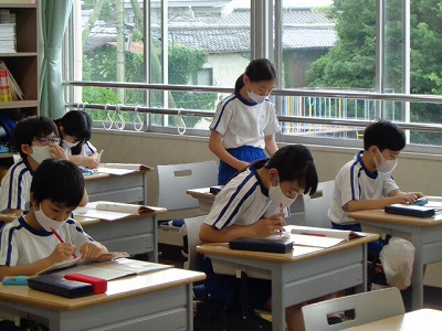 4時間目は国語です。「新聞をつくろう」という単元の学習に入ります。今日は、まず新聞の特徴を知るために、実際の新聞を見ながら、共通する新聞の形式などにも注目して、気付いた事をクラスで話し合いました。