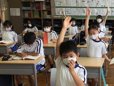 今日は、とってもよいお天気の中間休みです!教室で、ゆっくり過ごす人、外に出てドッジボールをする人、バスケットボールをする人、カエルのえさを探す人、日差しが強く暑い中ですが、みんな楽しく元気に過ごしています!