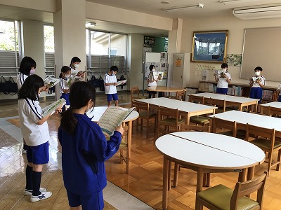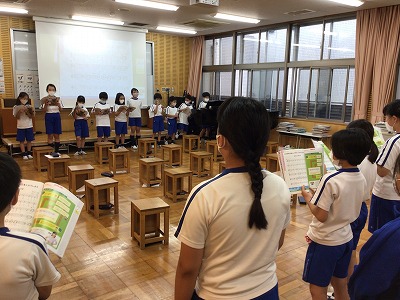 「♪ゆかいに歩けば」の部分二部合唱に取り組んでいます。