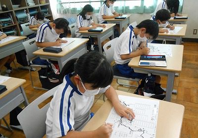 昼根っこタイムは、週に一回の都道府県テストです!県庁所在地のテストにチャレンジする4年生もいます!