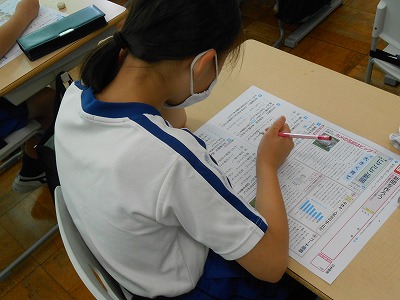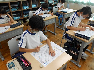 1時間目の国語は、1学期に行った「新聞を作ろう」と「聞き取りメモの工夫」のテストです。