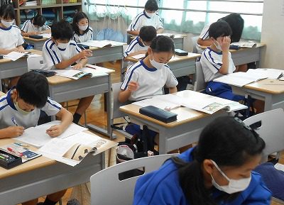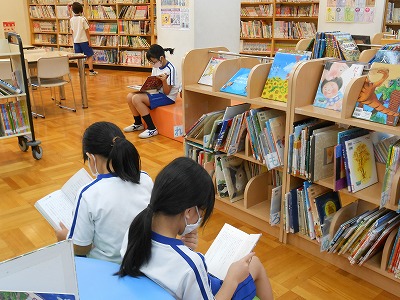 4時間目の読書の時間では、図書館に行って新しい本を探します!国語で勉強している「ごんぎつね」の絵本も見つけました。自分の興味があることを、一生懸命調べている人もいます。みなさん時間が経つのも忘れて、集中して読んでいました。