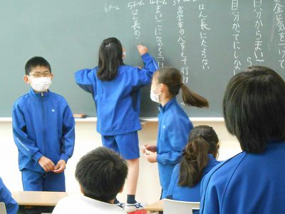 1時間の学級活動は、今週に行われる「秋の全校遠足」に向けて、4年生としての目標を話し合いました。4年生は高学年として、班長さんのサポートをしていかなければならない学年です。「めいわくにならないよう行動」などの意見が挙がる中で、「班長さんに頼らなくてもいいように~」という高学年らしい意見も出ました。4年生の中には「副班長」となる人も多数います。ただただ楽しく遠足に行くだけではなく、自分が「れんげ班の中で、何ができるのか」をしっかり考える時間となりました。