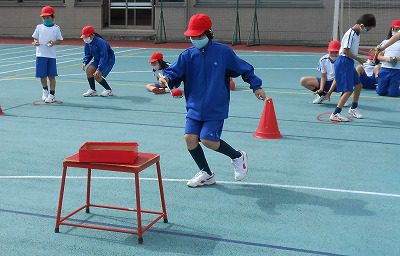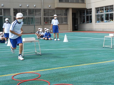 4時間目は体育です。今日は、徒競走と障害物リレーの練習を行いました。