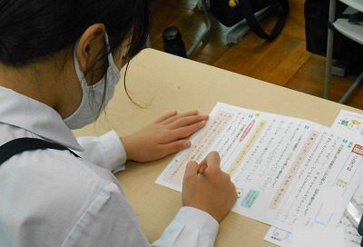 その後、「ごんぎつね」の単元確認プリントを取り組みました。「ごんぎつね」には、たくさんの昔の言葉が使われています。調べたことを思い出しながら、言葉の意味や漢字などをおさらいしました。