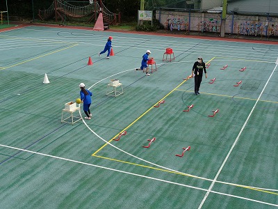 体育では、スポーツフェスティバルに向けて中学年競技の練習です。