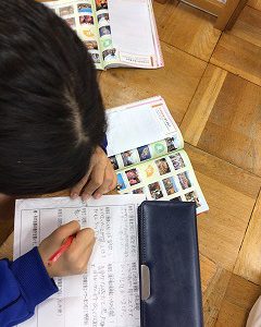 3時間目、国語の学習は、毎日の漢字5問テストからスタートします。4年生で習う新出漢字の練習が終わり、ここからは反復練習を続けます。満点を取れるように、それぞれが自分に合った勉強方法を探してきました。少しずつ満点が増えてきています。