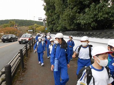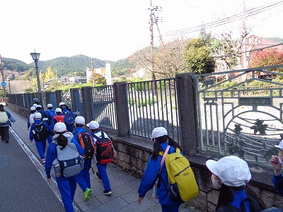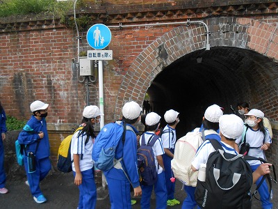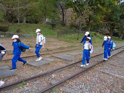 インクラインの線路には、観光客の姿がたくさん見られました。4年生も趣のあるすてきな景色と共に、学校まで下って行きます。