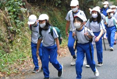 朝は少し肌寒い気候でしたが、急な坂を歩くうちに、みんなすっかり半そでです!まだまだこれから!一歩一歩踏みしめてがんばります。