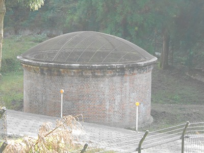 汗をかきながら、小関越えコースを歩いていると、第1たて坑が見えてきました。難所・長等山トンネル工事には、このたて坑が大変役に立ちました。