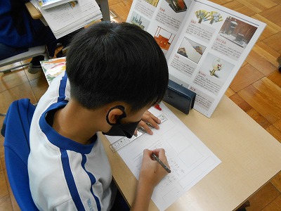 調べ学習をしながら、下書き作りです。はじめ・中・おわりの構成を思い出しながら、選んだ伝統工芸品のよさを紹介していきます。