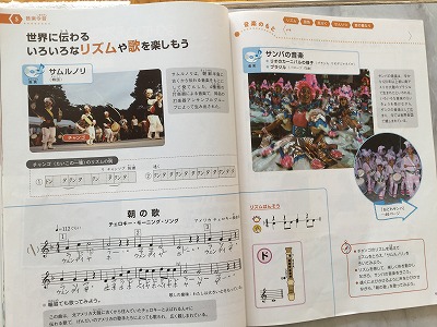 「サンバ」は、軽快なリズムやパワフルな曲からも、元気いっぱい!明るい!が象徴されるような音楽です。「ブラジル」というブラスバンドの曲も鑑賞したので、教科書の写真からも伝わるエネルギーを感じてくれたようです。