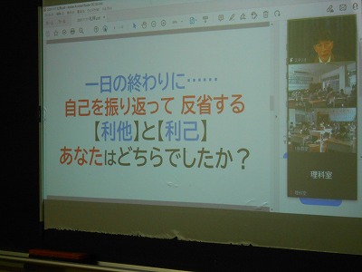 今日は、校長先生から「利他の心」についてのお話がありました。
