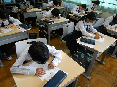 国語は「漢字50問テスト」を行いました。出題範囲は、2学期の前半までの漢字です。