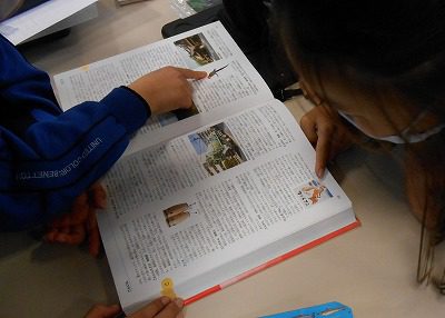 3時間目も国語の学習です。今日は図書室に移動して、教科書の「百科事典を使って調べよう」の単元を行いました。