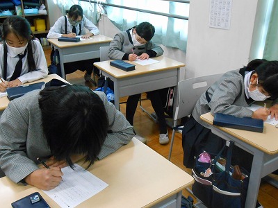 昼根っこタイムには、漢字大会の小テストに取り組みます。はねやはらいにも注意して、正しくスピーディーに書くことを目標にがんばりました。