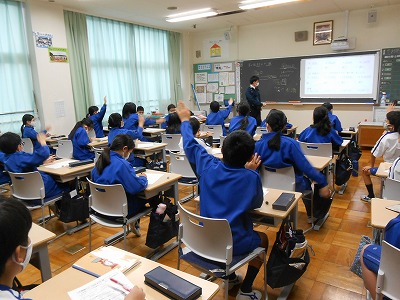 4時間目は国語の学習です。「プラタナスの木」というお話を読み深めています。