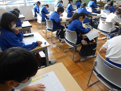 1時間目の国語は「漢字50問テスト」を行いました。4年生は新出漢字の学習もすべて終了し、くり返しの学習を進めています。