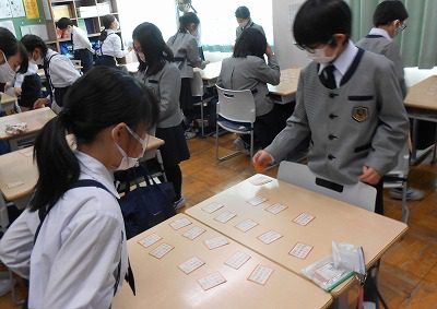 2学期から挑戦してきた「オレンジかるた」ですが、今日からは、いよいよ相手をつけて対戦です!上の句を読むだけで「パンッ」と音が鳴るテーブルもあります。