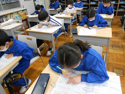 国語の学習では、2学期に取り組んだ「れんげ作文」のパソコン入力を行いました。