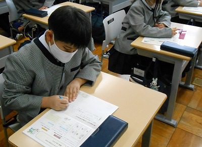 国語の学習では、2学期に行った「プラタナスの木」の学習の確認テストを行いました。
