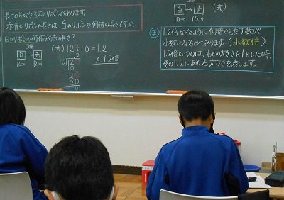 3時間目は算数です。小数のかけ算やわり算について学習を続けていました。今日は「小数倍」について学習します。