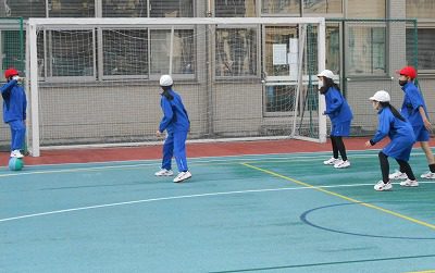 体育はサッカーの学習を続けています。今日は最後の6人制ミニゲームを行いました。