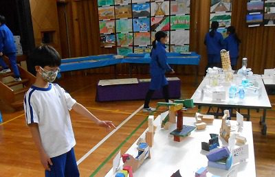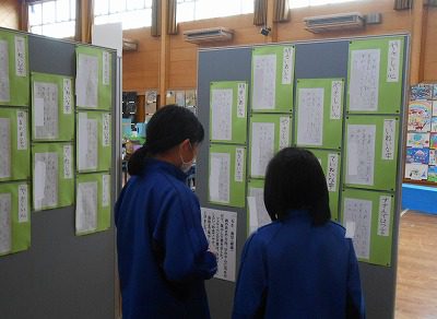 他の学年の作品を見て、「この作品おもしろい!」と会話を交わしている様子がありました。どれも、すばらしい作品です!