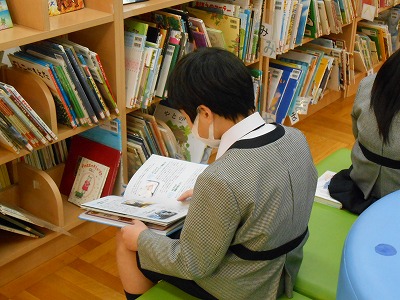 火曜日の6時間目は、読書の時間です。図書室で自分の気になる本を探しました。