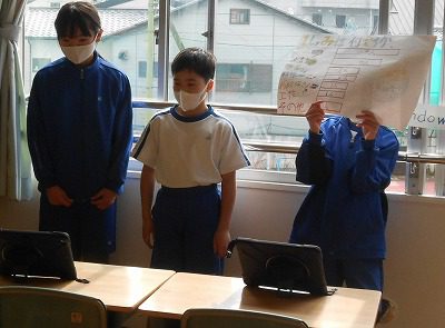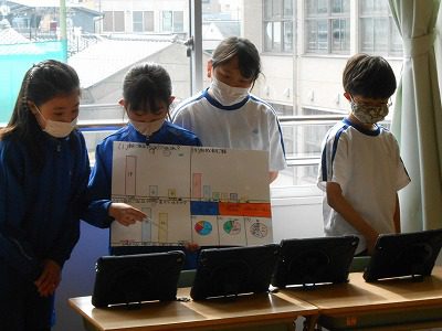 国語は「調べよう、生活調査隊」という単元の学習をしています。いよいよ明日は発表会です。今日は、各班に分かれて発表練習を行いました。