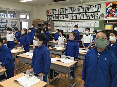 朝根っこタイムには、音読を行います。4年生では、6年生ありがとうの会で音読を発表をすることに決まりました。
