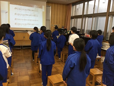 これまでに「朝の放送」で流れていたこともあり、4年生の皆さんは、すぐに歌い始めていました。