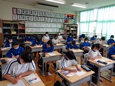 5時間目の国語では、「都道府県カルタ」を作成しています。
