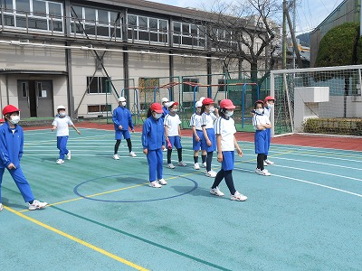 ドッジボールでは、当てる側と逃げる側のそれぞれの特徴やポイントについて確認してからスタートしました。当てる側は、外野と内野でのパスをすばやくし、相手が逃げる時間をつくらないことがポイントです。逃げる側は、ボールから目を離さず、背中を向けないように逃げることがポイントでした。どのチームも勝敗がなかなかつかない戦いとなりました。
