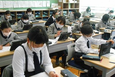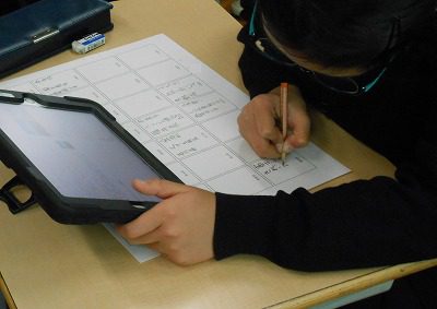 都道府県の特徴や名産品を、タブレットや地図帳の統計のページを参考にしながら見つけ出し、五・七・五に当てはめていきました。