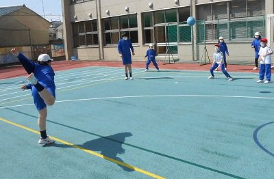 せっかくなので、挨拶に来てくれた6年生に少しだけドッジボールに参加してもらいました。4年生がどんな速いボールを投げても、6年生にキャッチされてしまいます!6年生と遊べるのも今日で最後!楽しい思い出ができました。